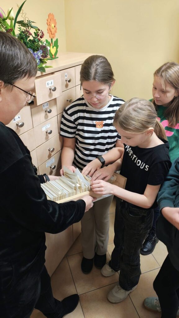 Klasa czwarta miała przyjemność odbyć zajęcia języka polskiego w Bibliotece Publicznej w Przyjmie. Uczniowie zdobyli wiedzę na temat zasobów biblioteki, pracy bibliotekarza oraz dowiedzieli się, jakie informacje można odczytać z karty katalogowej.