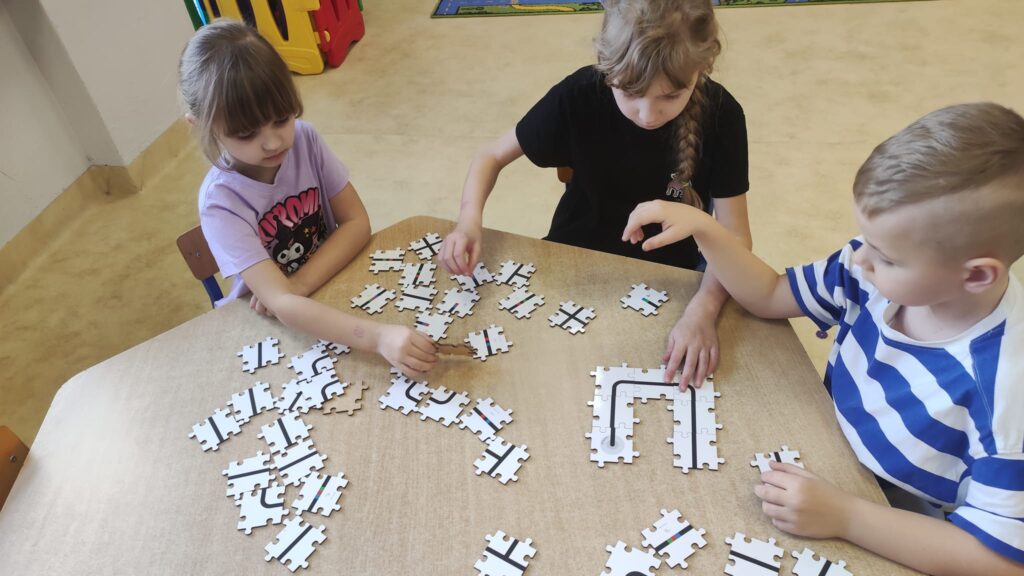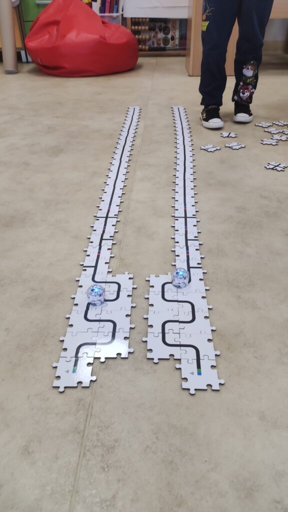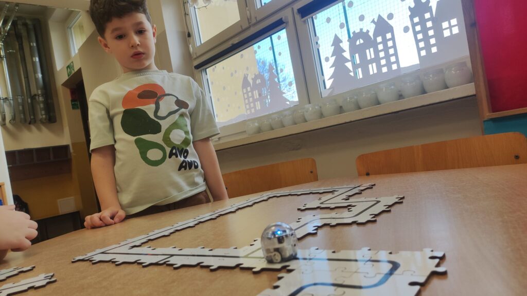 W ramach projektu unijnego „Nasi Mali Odkrywcy” przedszkolaki ostatnio na zajęciach z programowania poznały bliżej maleńkie Ozoboty. Najmłodsi uczą się programować te sympatyczne roboty za pomocą specjalnych puzzli. Zadanie to wymaga planowania i logicznego myślenia. Przedszkolaki bawiły się świetnie i urządziły robotom wyścigi.