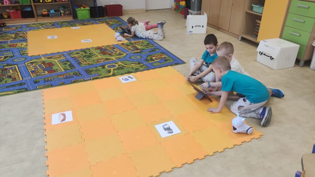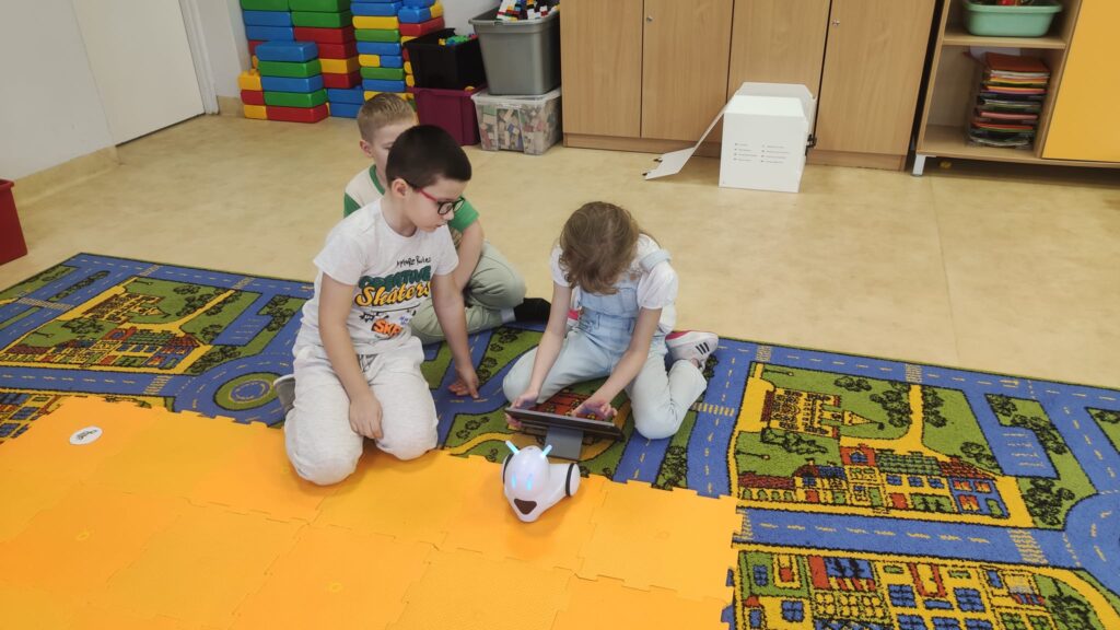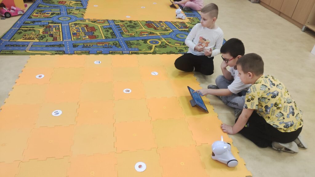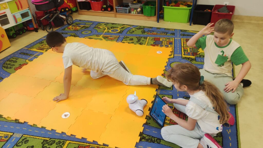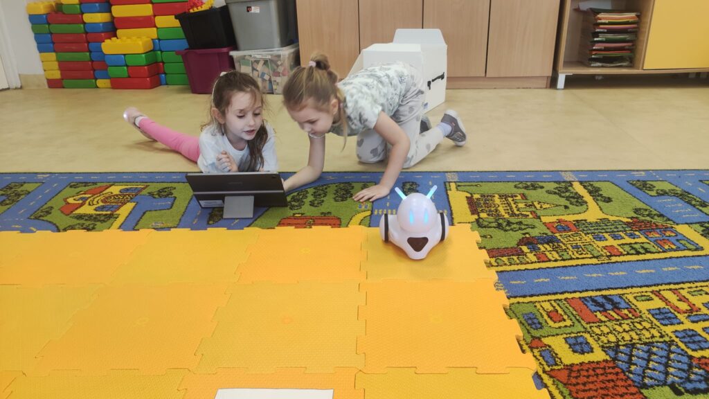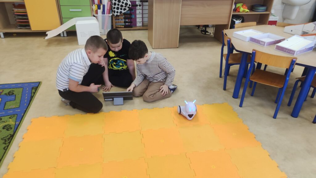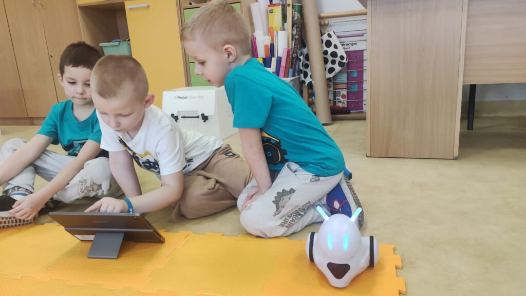 Na zajęciach z programowania przedszkolaki poznały ostatnio przesympatycznego Photona. To największy z naszych robotów. Dzieci najpierw zapoznały się z możliwościami Photona i powoli uczyły się jak go zaprogramować. Potrzebne do tego okazały się tablety, a więc zdobycie kolejnej umiejętności. Potem były pierwsze próby i mnóstwo emocji. Teraz przedszkolaki wykonują coraz bardziej skomplikowane zadania i dobrze się bawią.