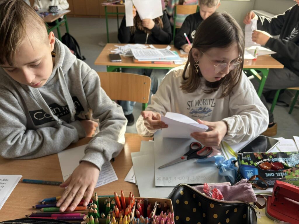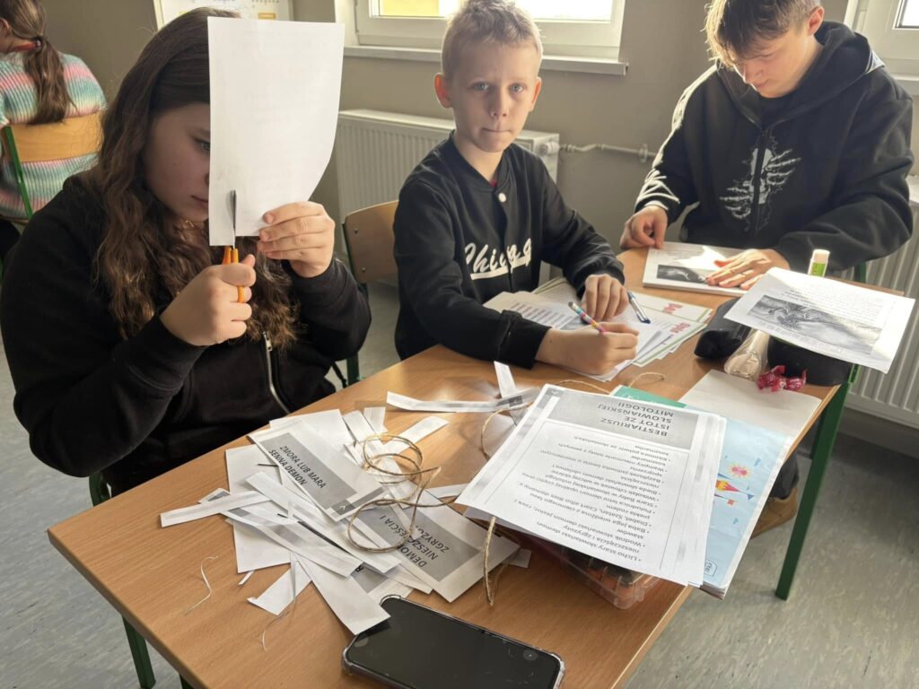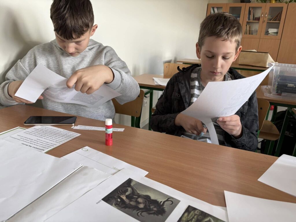 Po omówieniu lektury „Tajemnica domu w Bielinach” uczniowie klasy 5 stworzyli własne bestiariusze, w których opisali niezwykłe istoty inspirowane książką. W ich pracach pojawiły się magiczne stwory, duchy i demony ze słowiańskich wierzeń.