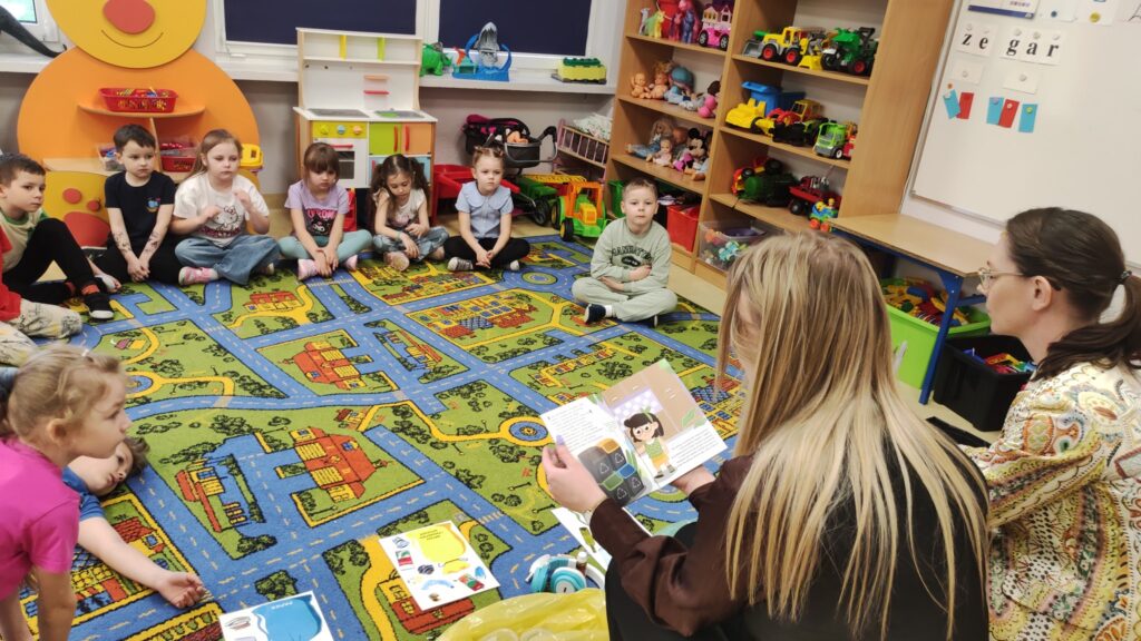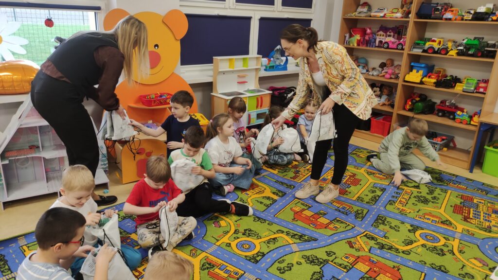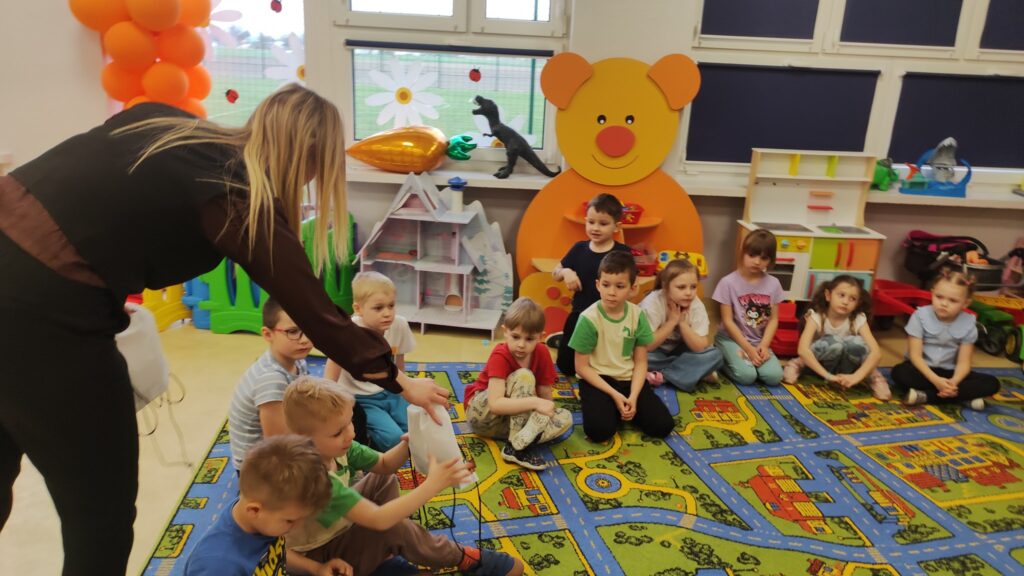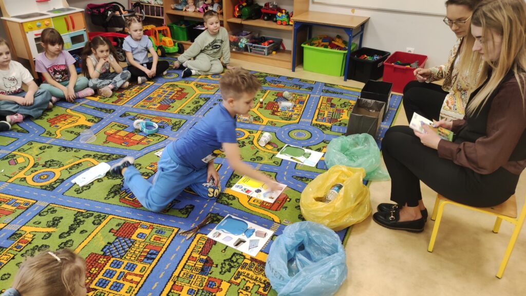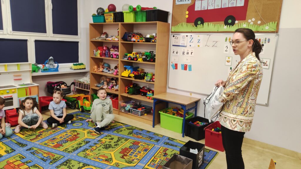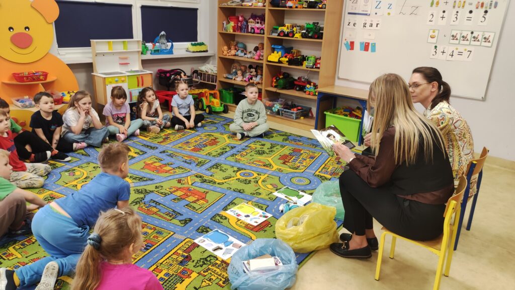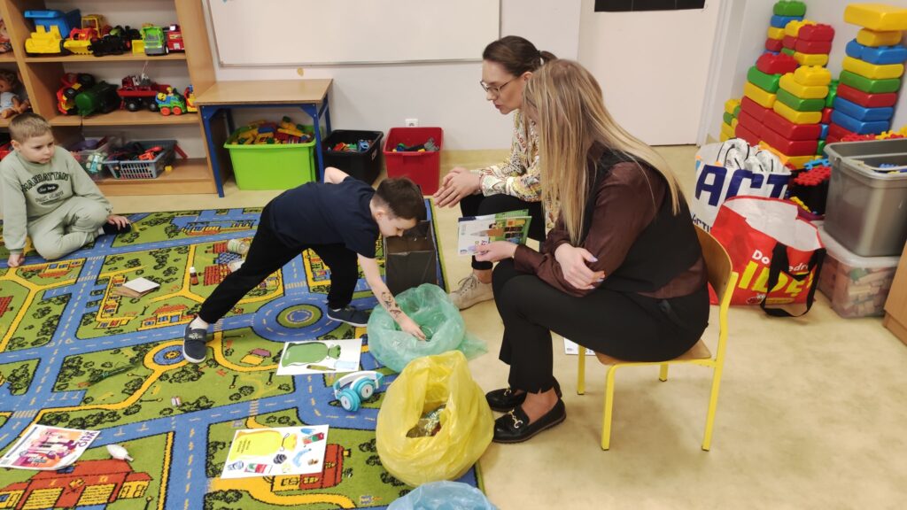 Dziś dzieci z oddziałów przedszkolnych odwiedziły Panie z Urzędu Miejskiego w Golinie, które pracują w dziale gospodarki odpadami komunalnymi. Przedszkolaki uczestniczyły w krótkich zajęciach dotyczących segregacji odpadów. Miały okazję w praktyce sprawdzić swoją wiedzę, a na koniec otrzymały upominki. Serdecznie dziękujemy naszym Gościom.