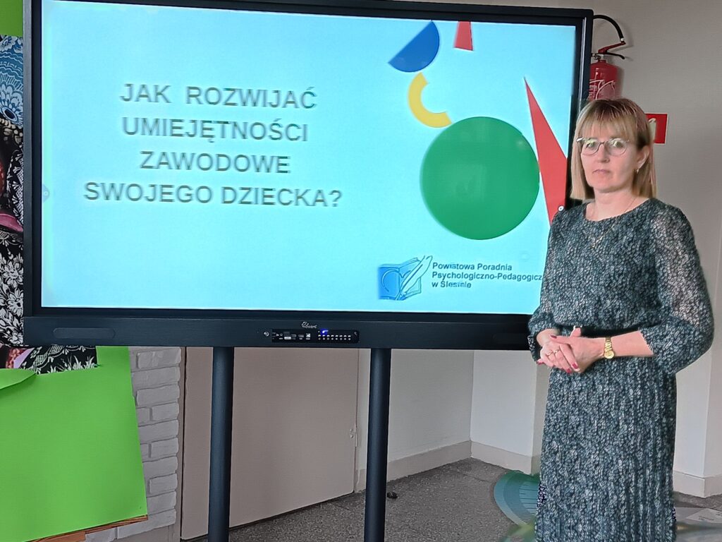 W naszej szkole odbyło się spotkanie rodziców z p. Justyną Jarmuż-doradcą zawodowym z Poradni Psychologiczno-Pedagogicznej w Koninie, Filia Ślesin na temat ,,Jak rozwijać umiejętności zawodowe swojego dziecka”. Pani doradca zwróciła uwagę rodziców jak bardzo ważne jest rozwijanie zainteresowań dzieci od najmłodszych lat i spędzanie z nimi czasu wolnego. Poinformowała rodziców o możliwości przeprowadzenia w poradni testu predyspozycji zawodowych przez uczniów klasy 8. Dziękujemy p. Justynie Jarmuż za wartościowe spotkanie:)