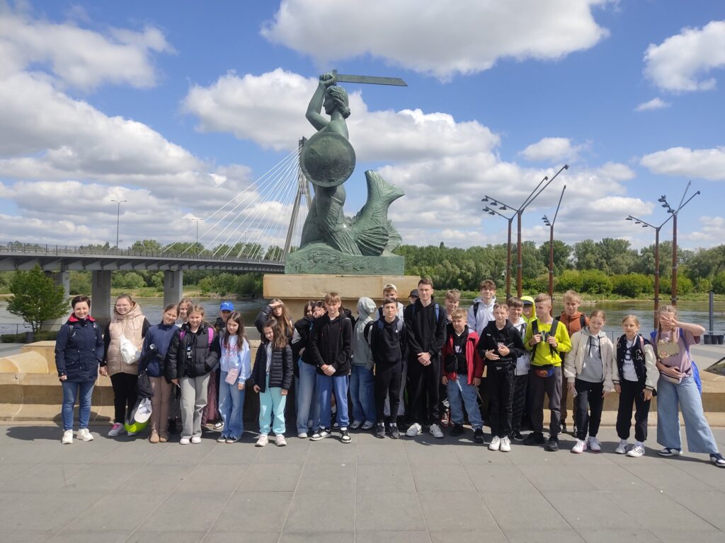 W dniach 8–9 maja 2025 r. uczniowie klas 4–8 wzięli udział w pełnej wrażeń wycieczce do stolicy. Pierwszego dnia odwiedzili Lotnisko Chopina, przejechali metrem do centrum, a następnie zwiedzili interaktywne Cosmos Muzeum, Plac Europejski oraz Muzeum Fabryki Norblina. Drugiego dnia spacerowali po urokliwym Parku w Wilanowie i podziwiali z zewnątrz rezydencję króla Jana III Sobieskiego. Następnie czekała ich sportowa przygoda – zwiedzanie Stadionu Narodowego trasą „Piłkarskie emocje”. Na zakończenie wycieczki odkrywali uroki warszawskiej Starówki: Plac Zamkowy, Rynek Starego Miasta, Syrenkę i Pomnik Małego Powstańca. To były dwa dni pełne edukacyjnych i niezapomnianych przeżyć!