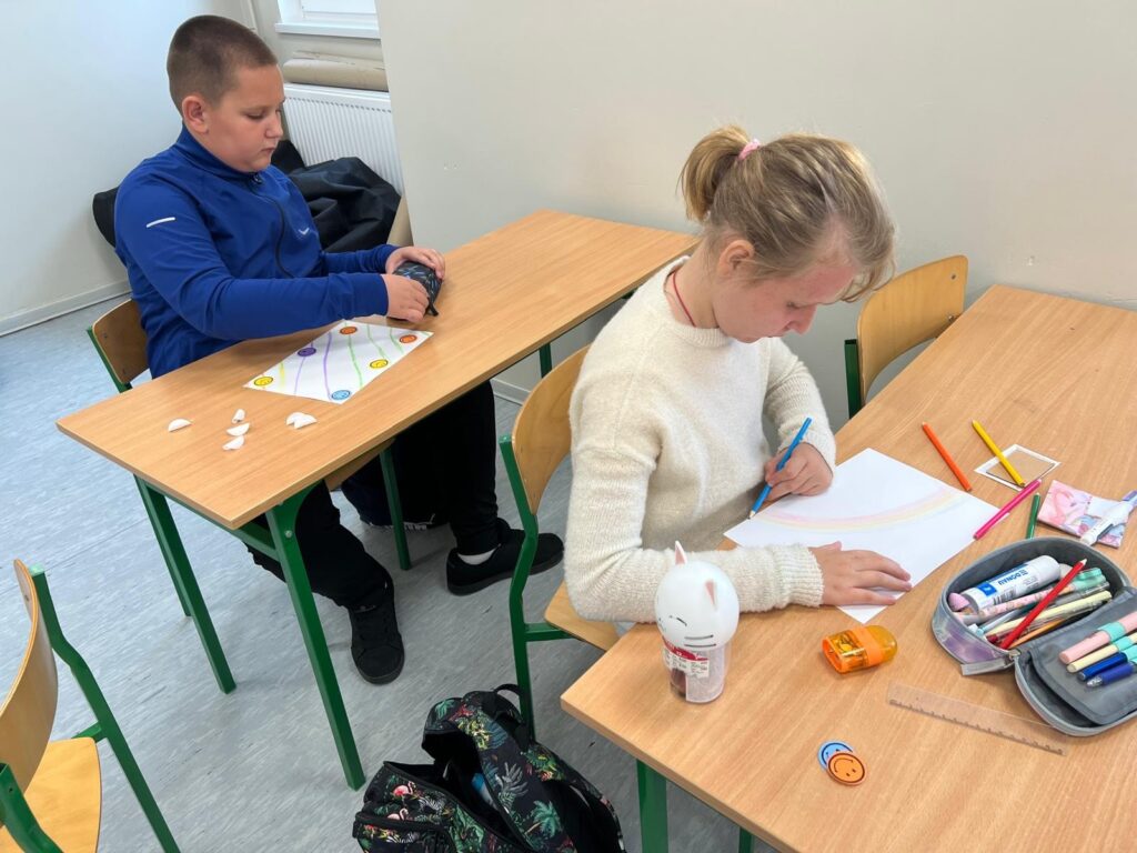 Dodatkowo uczniowie klasy IV uczestniczyli w zajęciach warsztatowych, które miały na celu uświadomienie im, że każdy z nich ma wpływ na atmosferę w klasie. Ćwiczenia rozwijały umiejętności współpracy, komunikacji i odpowiedzialności, a także pokazywały, jak budować wspólnotę opartą na wzajemnym szacunku i zrozumieniu.