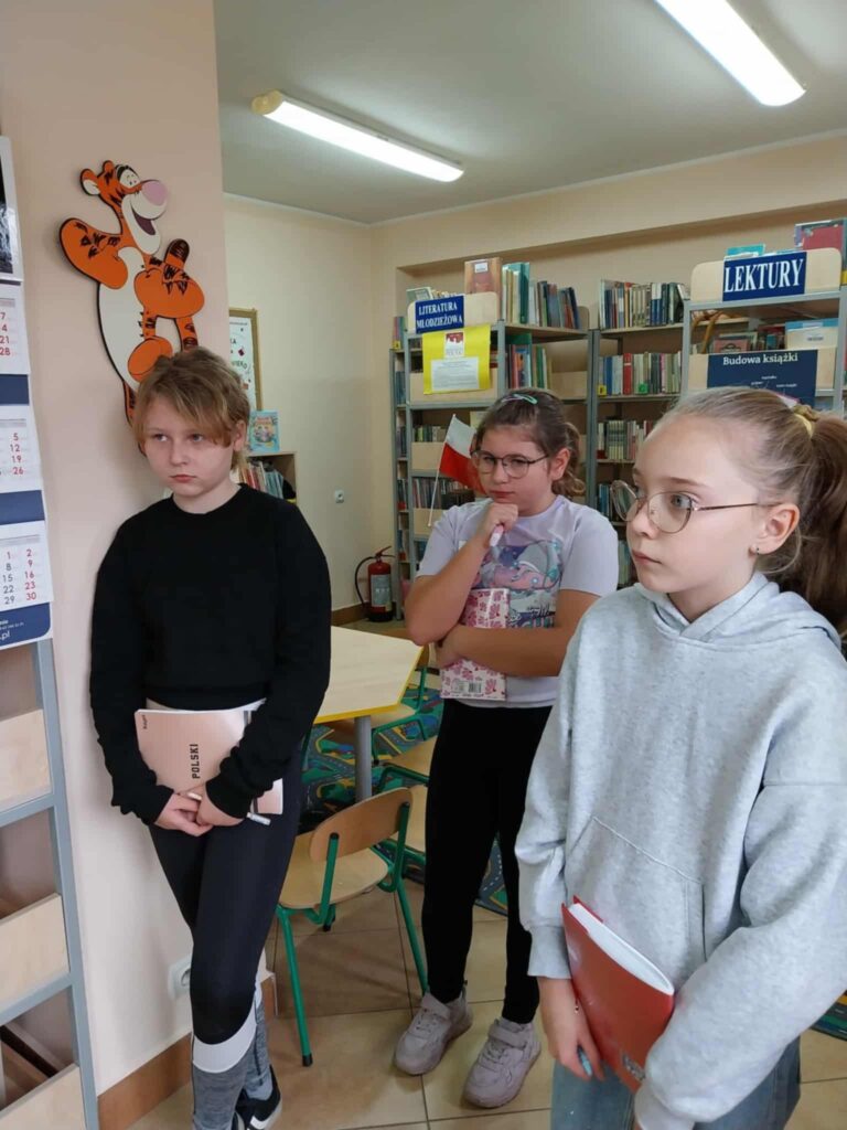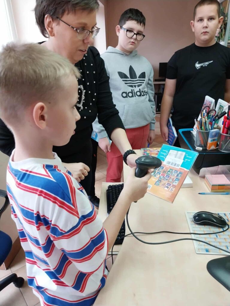 Zajęcia rozpoczęły się od krótkiego wprowadzenia, podczas którego uczniowie dowiedzieli się, czym zajmuje się bibliotekarz, jak wygląda proces wypożyczania i zwracania książek oraz jak książki trafiają na półki. Dzieci miały również okazję zobaczyć, jak wygląda katalog biblioteczny oraz jakie funkcje pełni on w pracy w bibliotece. Ponadto bibliotekarka Anna Nawrocka wyjaśniła uczniom, że katalog to „mapa”, która pomaga odnaleźć konkretną książkę spośród setek innych na półkach.