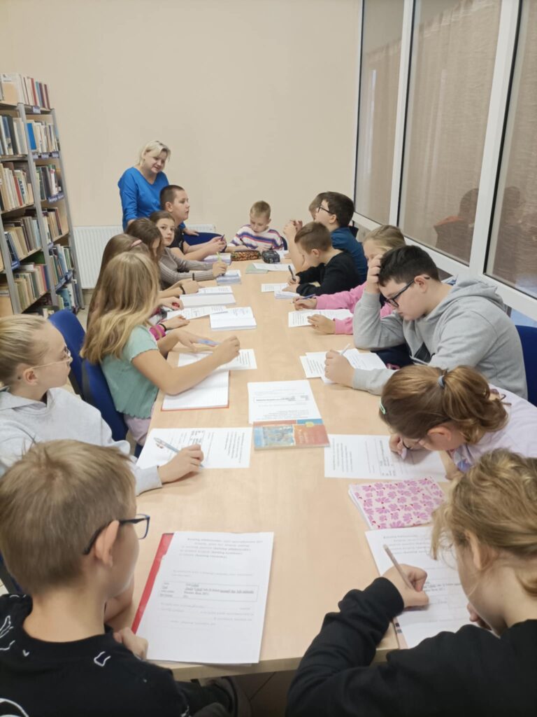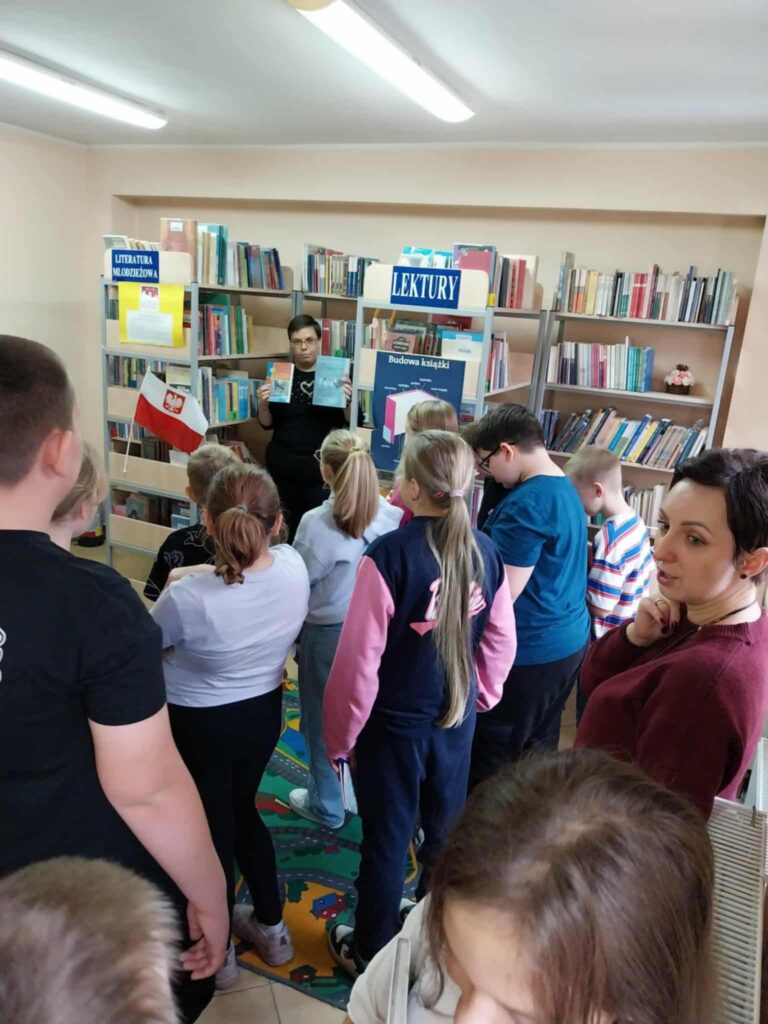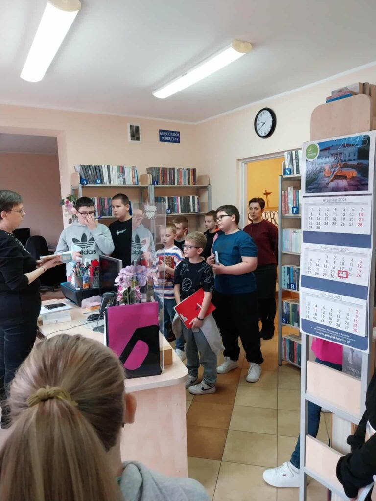 „Poznajemy zawód bibliotekarza” – wizyta czwartoklasistów w filii bibliotecznej w Przyjmie