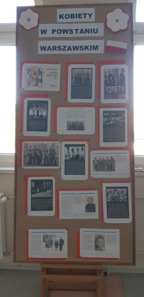 W ramach akcji uczniowie przygotowali również gazetkę tematyczną, poświęconą kobietom Powstania Warszawskiego – ich odwadze, poświęceniu i niezwykłej sile ducha.