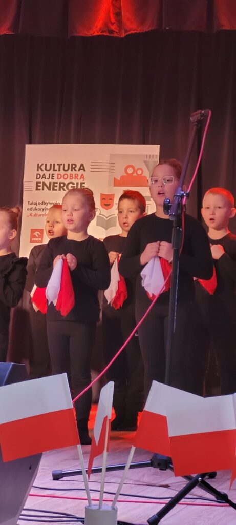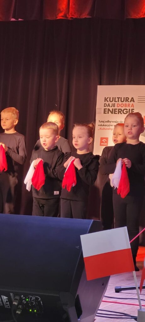 Dziś Przedszkolaki z naszej szkoły wzięły udział w Gminnym Konkursie Piosenki Patriotycznej. Najmłodsi zaśpiewali piosenkę „Niepodległości Dzień”.