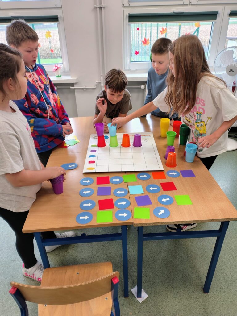 Do nauki kodowania wykorzystywane są kubeczki i karty pracy.