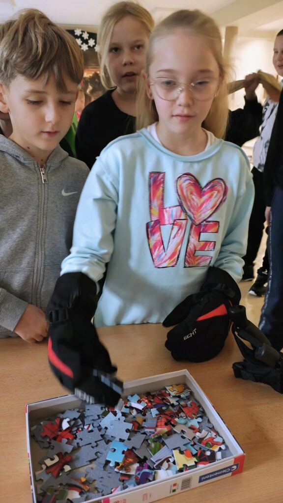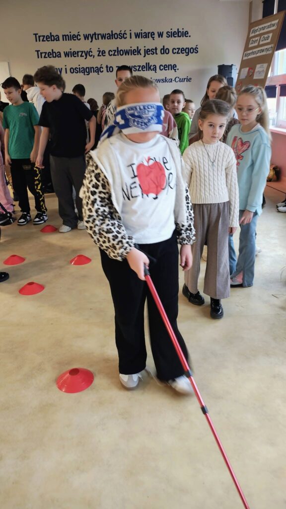 Dziś uczniowie naszej szkoły podczas przerw mogli wejść w rzeczywistość osób z niepełnosprawnością. Przygotowane zostały dla nich stanowiska, przy których mierzyli się z trudnościami z jakimi na co dzień borykają się osoby niepełnosprawne.