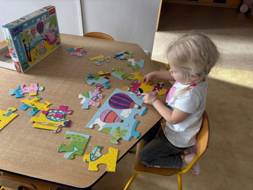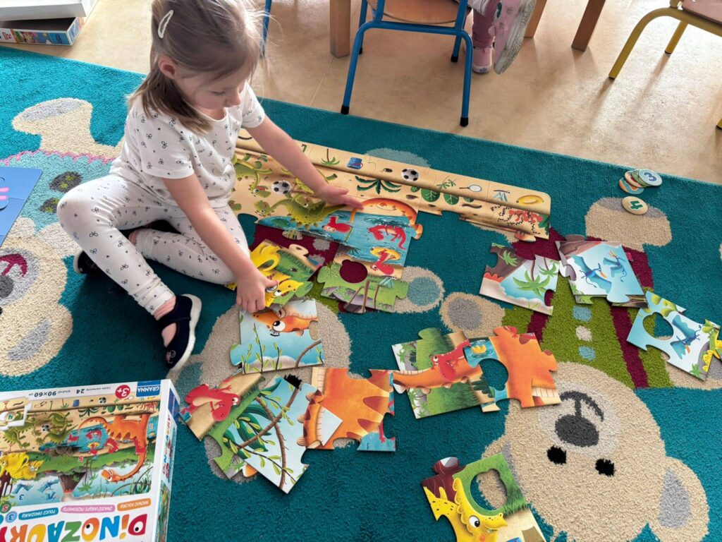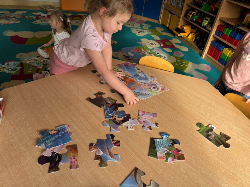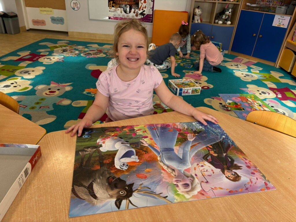 Dziś nasze przedszkolaki z wielkim zaangażowaniem układały puzzle – były małe sukcesy, dużo skupienia i jeszcze więcej radości ![]()