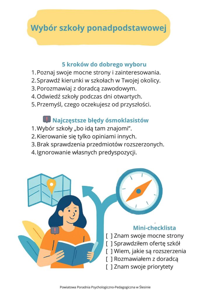 Przed Wami ważna decyzja – wybór dalszej ścieżki edukacji. To naturalne, że pojawia się wiele pytań i wątpliwości. Jednak nie musi być to stresujący czas. Doradczynie zawodowe naszej Poradni –