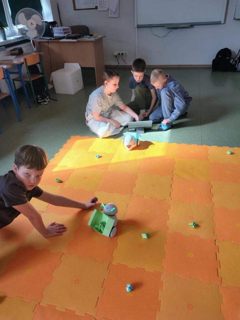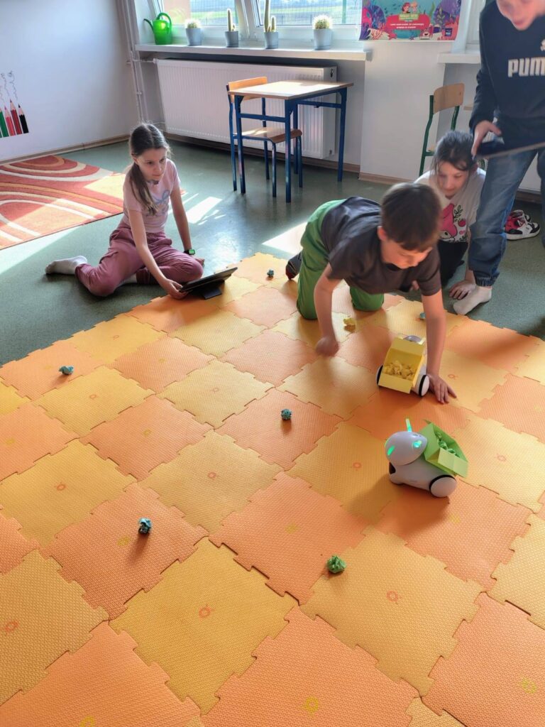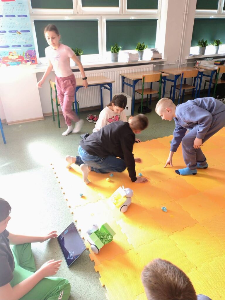Uczniowie klasy 3 podczas zajęć uczyli się zasad prawidłowej segregacji odpadów oraz programowania robota Photon. Zajęcia były pełne zaangażowania i dobrej zabawy ![]()