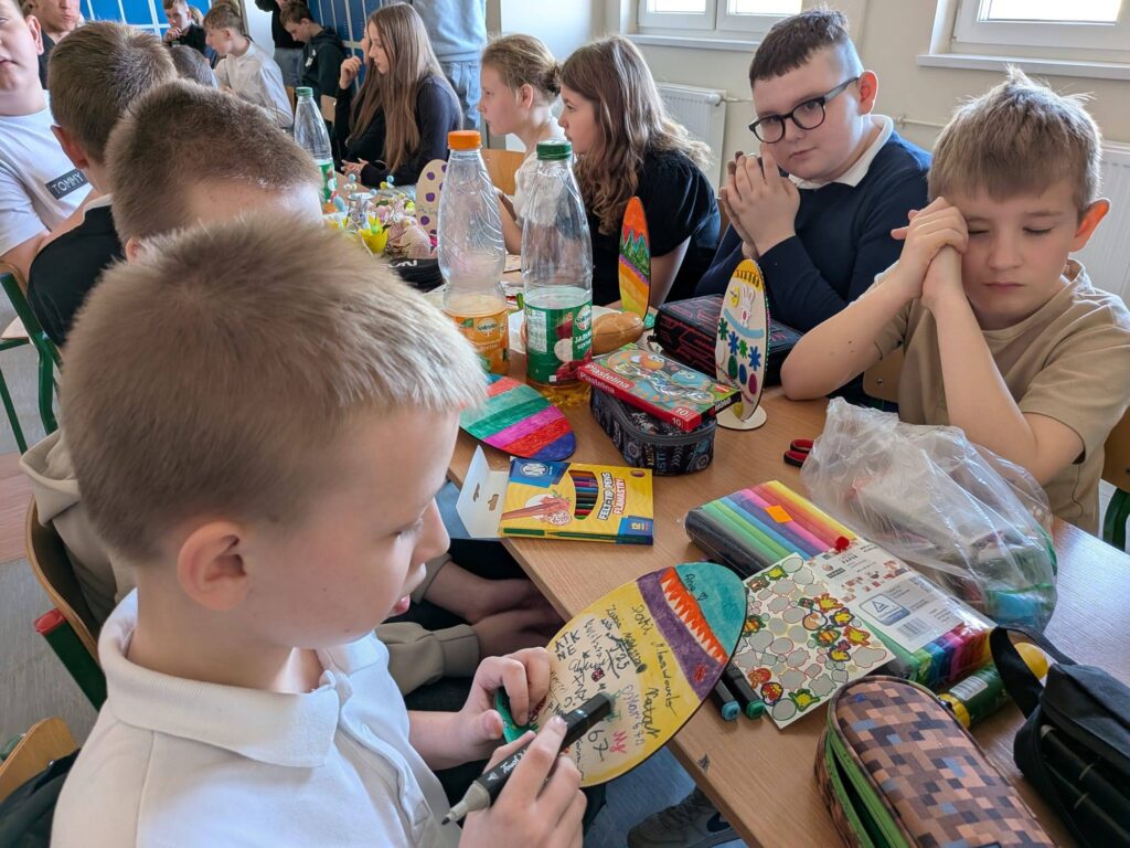Dziś uczniowie klas IV-VIII mieli śniadanie wielkanocne, a po poczęstunku wzięli udział w warsztatach, gdzie zdobili pisanki. W tym dniu wręczono również nagrody uczniom klas 4-8 -laureatom konkursu ,,Najpiękniejsza kartka wielkanocna”. To był świetnie spędzony czas, pełen śmiechu, zaangażowania i integracji!![]()